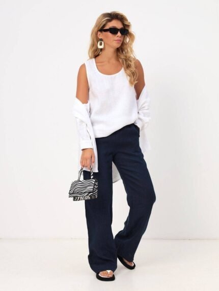 Moteris, pasipuošusi lininiais drabužiais, visuomet atrodys stilingai ir elegantiškai.
